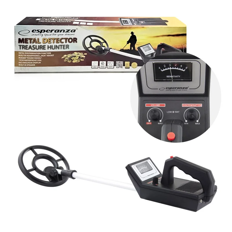 Detektor kovů značky Esperanza je lehký a snadno ovladatelný přístroj pro vyhledávání kovových předmětů pod zemí. Ideální pro hobby pátrače, sběratele mincí i milovníky dobrodružství. Ergonomický design a jednoduché ovládání zajišťují pohodlné používání.