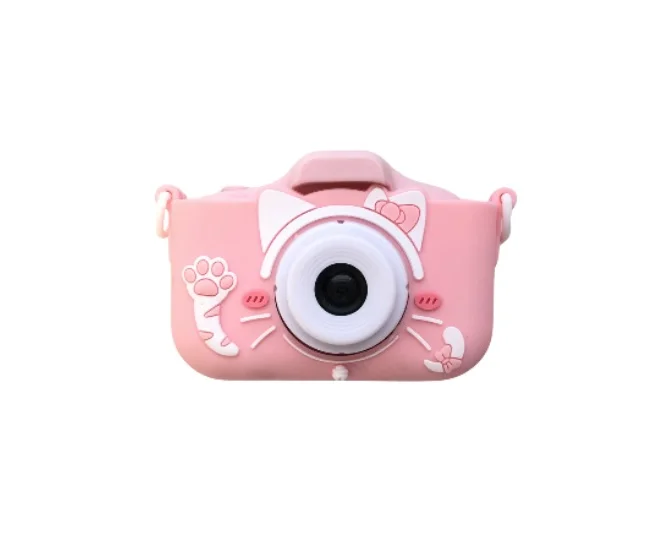Dětský digitální fotoaparát se silikonovým obalem v podobě kočičky – růžový