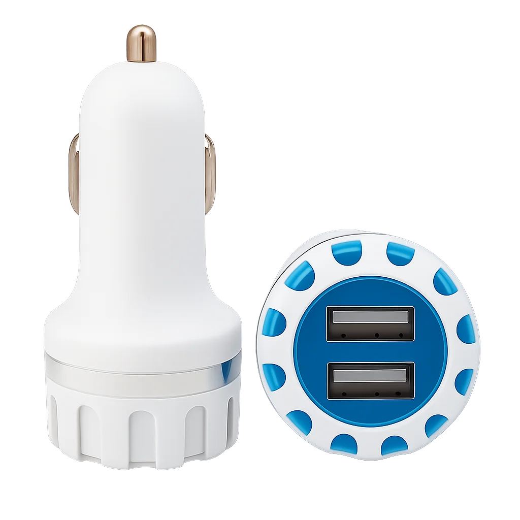 Kompaktní duální USB nabíječka do auta s podsvícenými porty umožňuje rychlé nabíjení dvou zařízení současně. Poskytuje výstup až 2,1A a je ideální pro cestování autem.