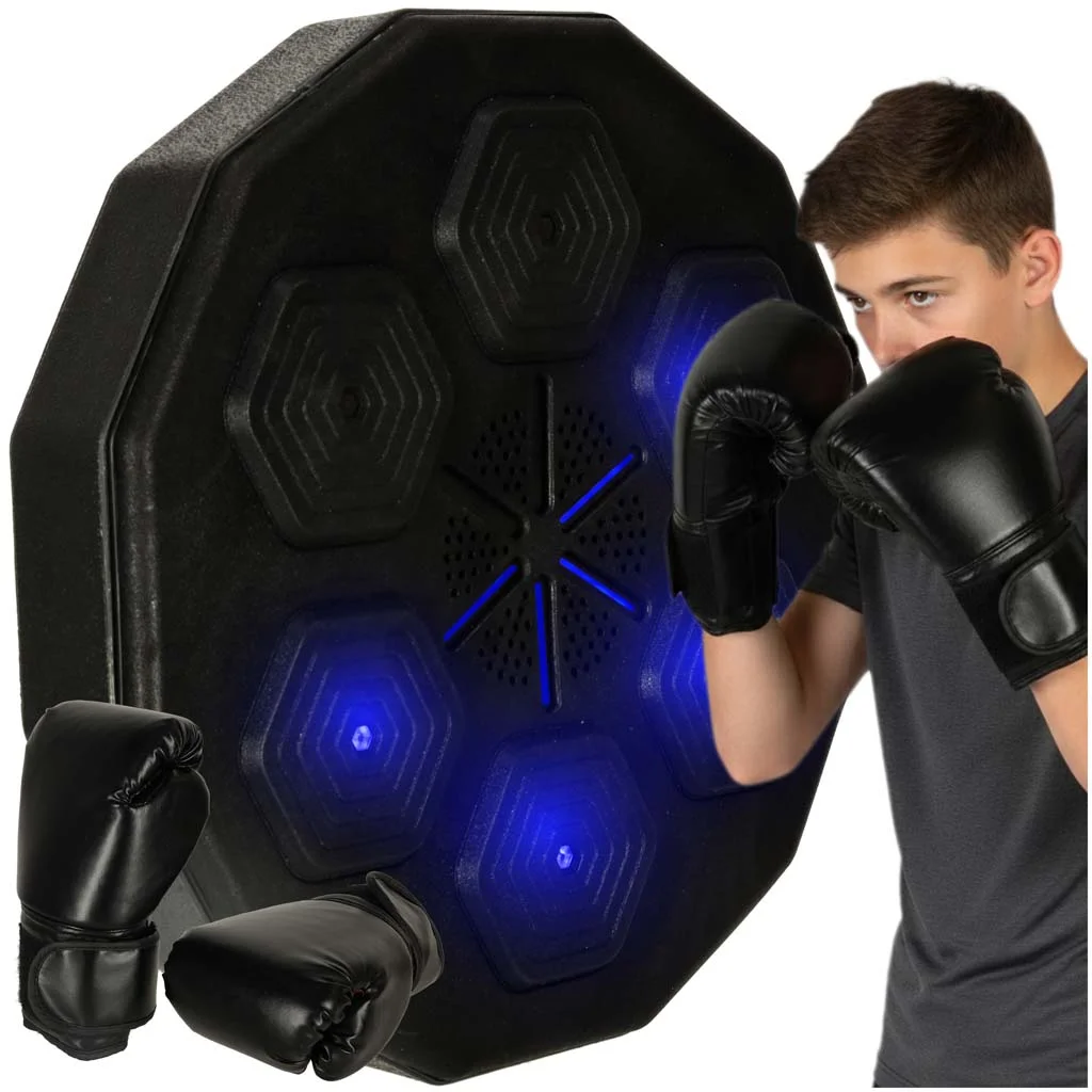 Elektronický nástěnný boxerský terč se světelnými úderovými body a zvukovými efekty přináší zábavný a intenzivní trénink přímo domů. Díky Bluetooth můžete cvičit v rytmu hudby, součástí jsou rukavice i montážní příslušenství.