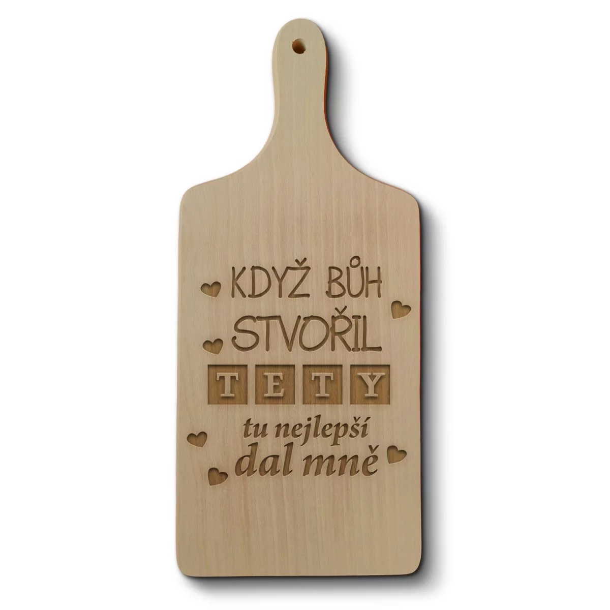 Stylové kuchyňské prkénko s originálním motivem. Praktický pomocník, který potěší každého milovníka vaření. Díky gravírovanému motivu se stane designovým doplňkem Vaší kuchyně. Udělejte radost své tetě originálním dárkem.