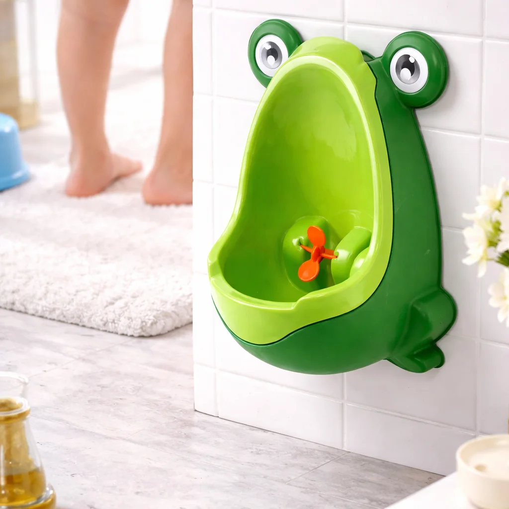 Zábavný dětský pisoár ve tvaru žáby pro malé kluky do 6 let, díky kterému bude odplenkování snadné. Dětský pisoár je praktický pomocník pro trénink na nočník, který děti motivuje díky otáčející se vrtulce při úspěšném zásahu.